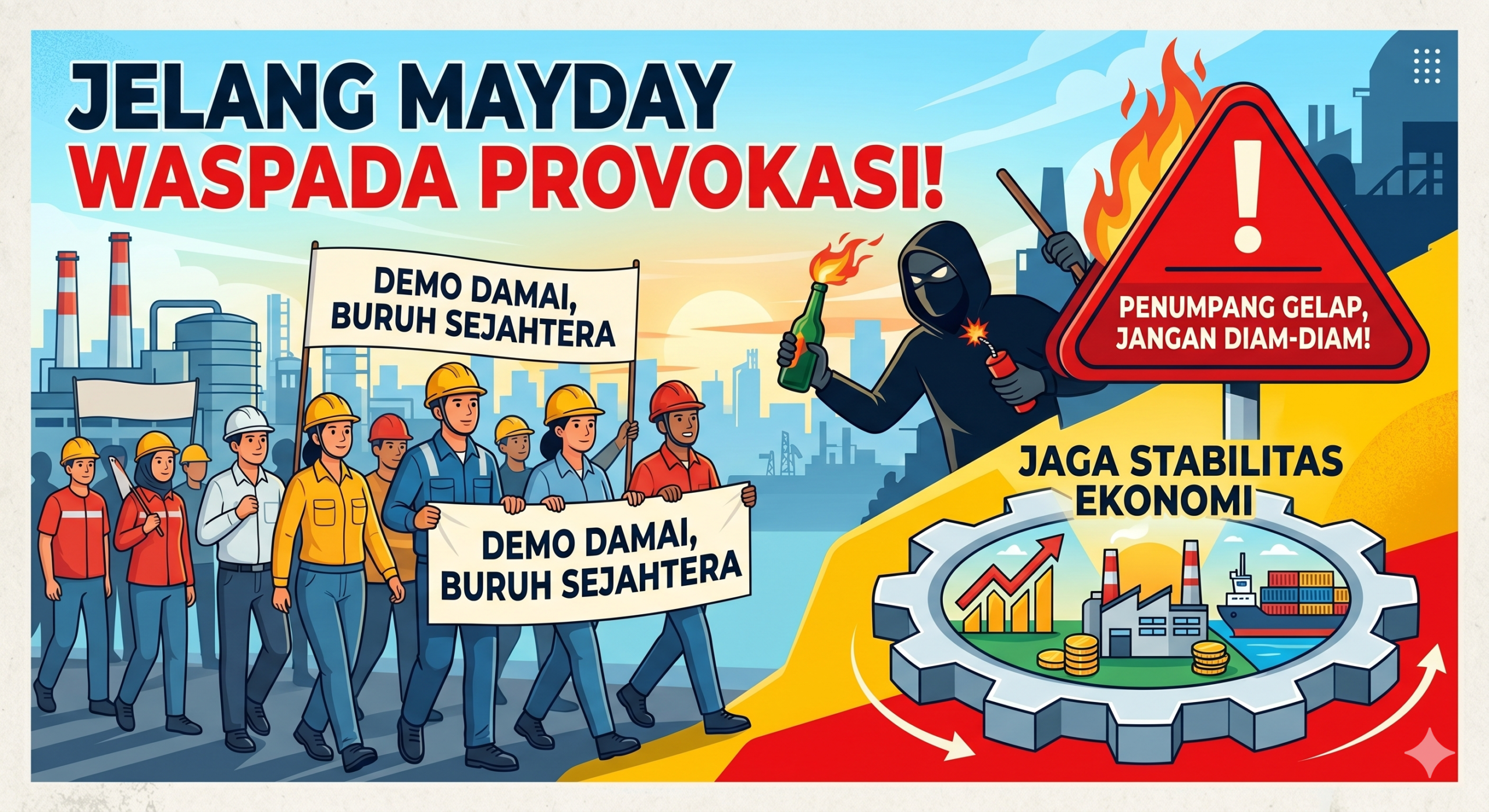 JAKARTA — Peringatan Hari Buruh Internasional atau Mayday yang jatuh pada 1 Mei mendatang diharapkan menjadi momentum refleksi dan penyampaian aspirasi yang damai. Di tengah persiapan berbagai serikat pekerja untuk turun ke jalan, muncul imbauan keras dari berbagai kalangan agar elemen buruh mewaspadai potensi provokasi yang dapat mencederai kemurnian perjuangan dan mengganggu stabilitas ekonomi nasional.