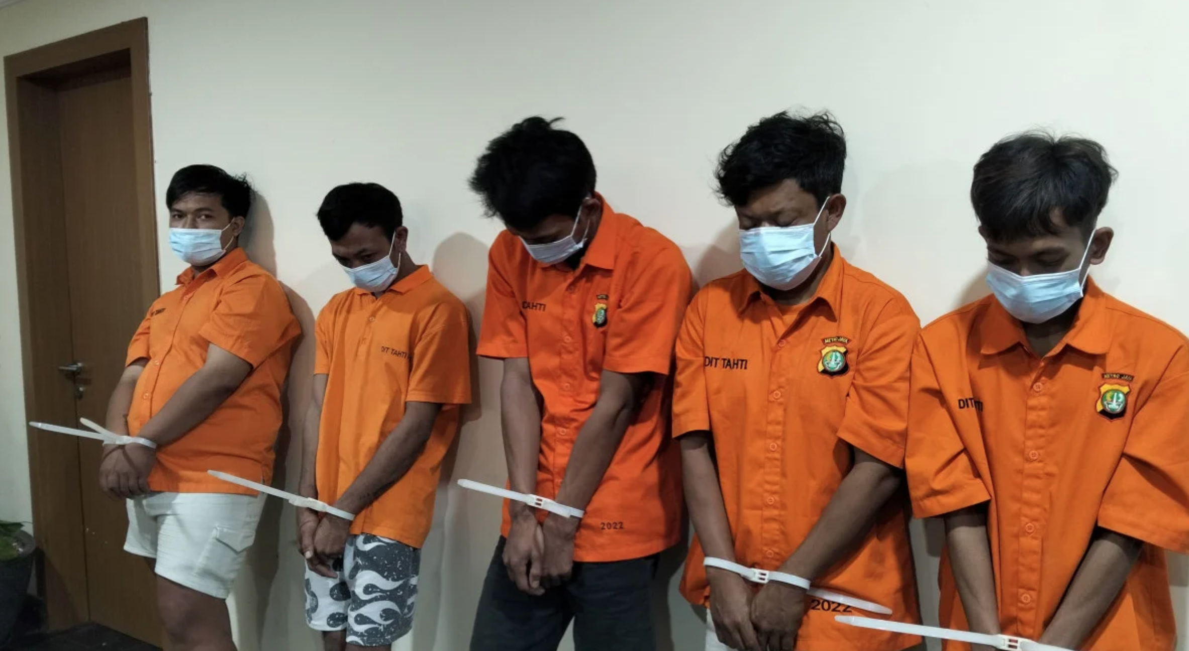 Para tersangka yang ditangkap adalah DA alias M (27), MR (25), AG alias T (30), NM (31), dan R alias A alias T (20). Informasi ini disampaikan oleh Kepala Bidang Hubungan Masyarakat Polda Metro Jaya, Komisaris Besar Polisi Ade Ary Syam Indradi.