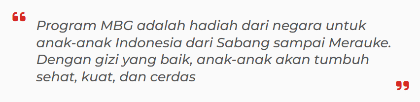 “Program ini bukan sekadar urusan memberi makan. MBG juga menghidupkan dapur rakyat, menggerakkan petani, nelayan, hingga UMKM lokal. Artinya, manfaatnya dirasakan bukan hanya anak-anak, tetapi juga perekonomian masyarakat sekitar,” jelasnya.